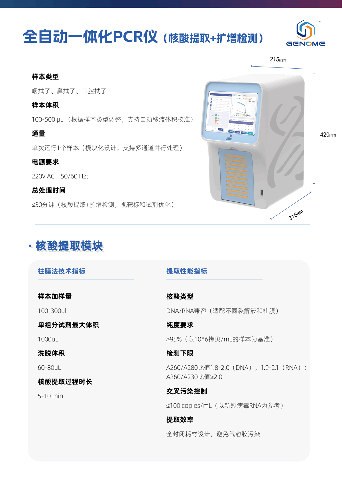 样本体积:100-500L(根据样本类型调整,支持自动移液体积校准)