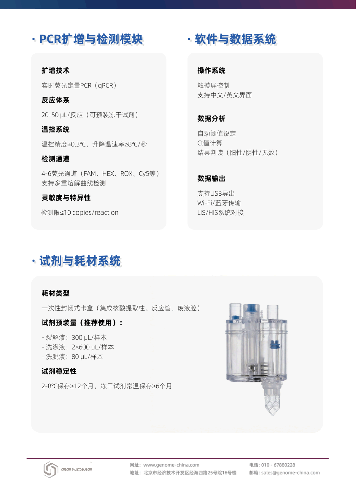 通量:单次运行1个样本(模块化设计,支持多通道并行处理